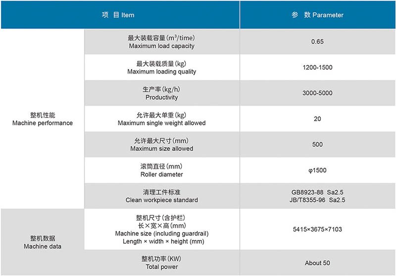 ? 本機與傳統(tǒng)使用Q32 型履帶式及Q31 型臥式滾筒清理機相比,具有裝料量大,清理效率高,使用成本低等顯著特點,可用于清理合理長度的桿狀、尖狀鑄件而不會損傷設(shè)備或鑄件。