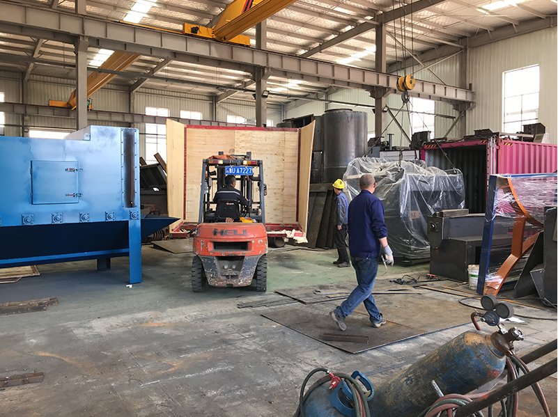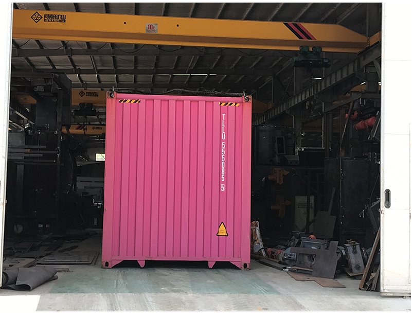 5月20日,普華智造園車間內(nèi),一臺(tái)泰國客戶定制的Q378雙吊鉤拋丸機(jī)正在被工人們裝進(jìn)集裝箱,今天即將啟程前往泰國,開始履行自己的使命。